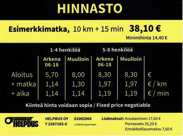 HelpBus Oy on vuonna 2009 perustettu perheyritys ja kokenut erityisryhmien kuljetusten asiantuntija. Toimimme pääasiassa Etelä-Suomessa ja sovittaessa laajemminkin. Palvelemme hyvinvointialueita, kuntia, kaupunkeja sekä vakuutusyhtiöitä – ja tarjoamme sujuvat kuljetusratkaisut myös yksityis- ja yritysasiakkaille.